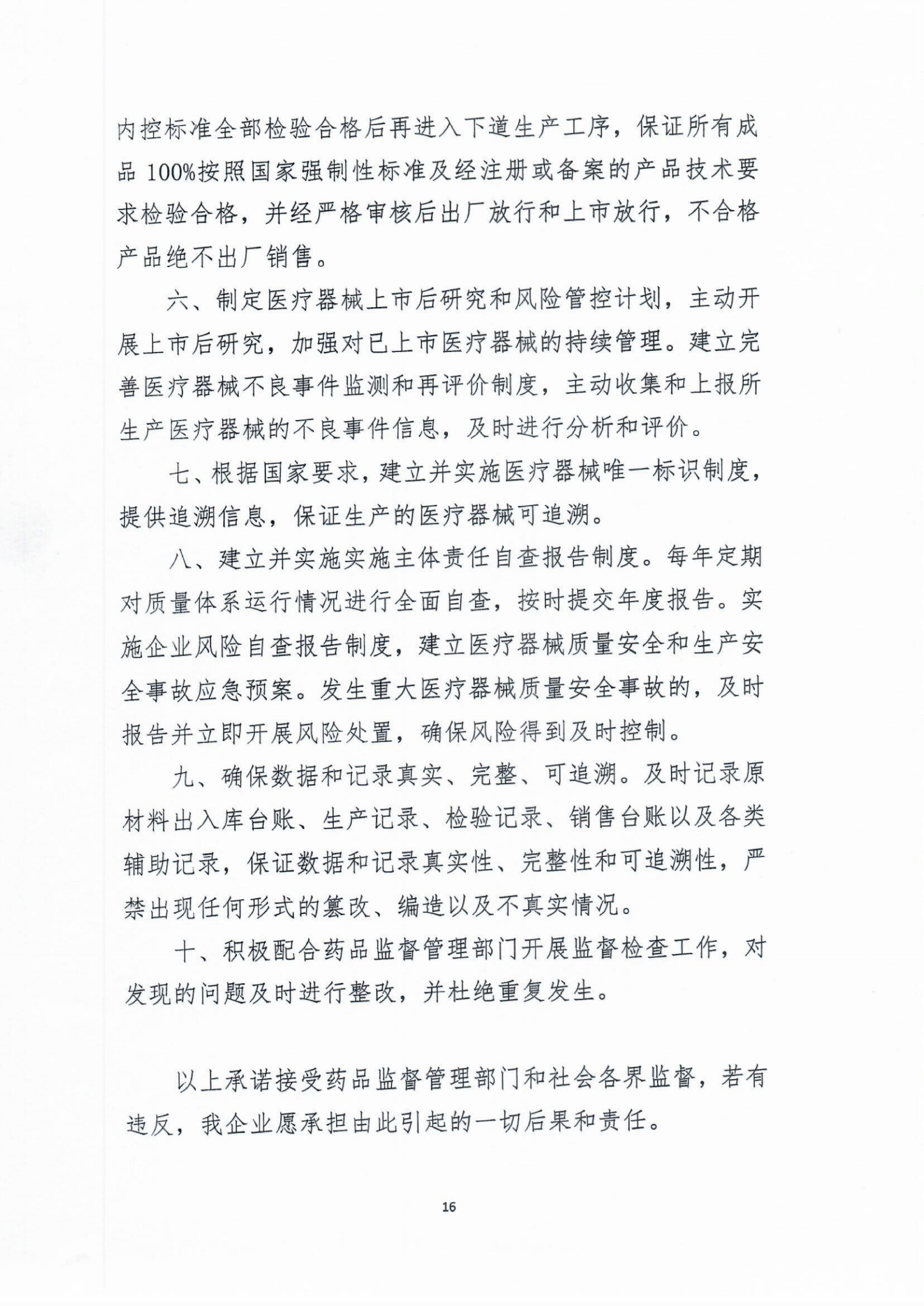 醫療器械質量安全主體責任承諾書