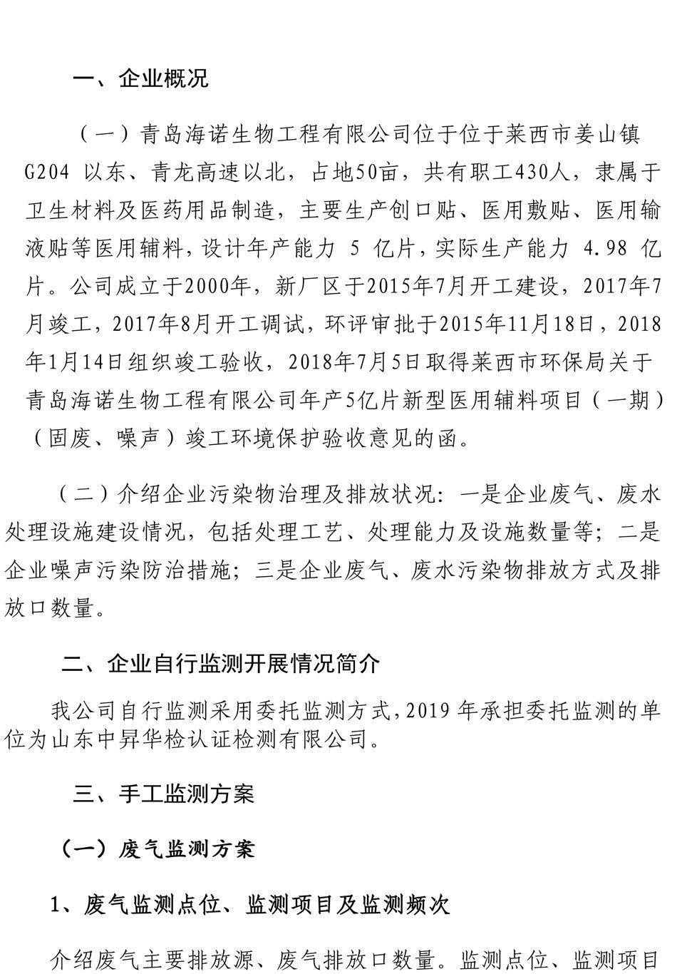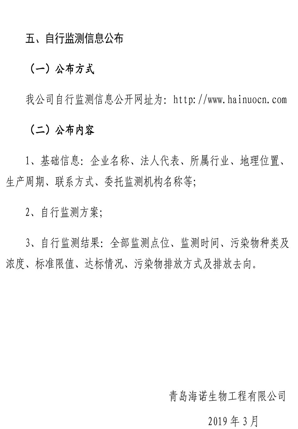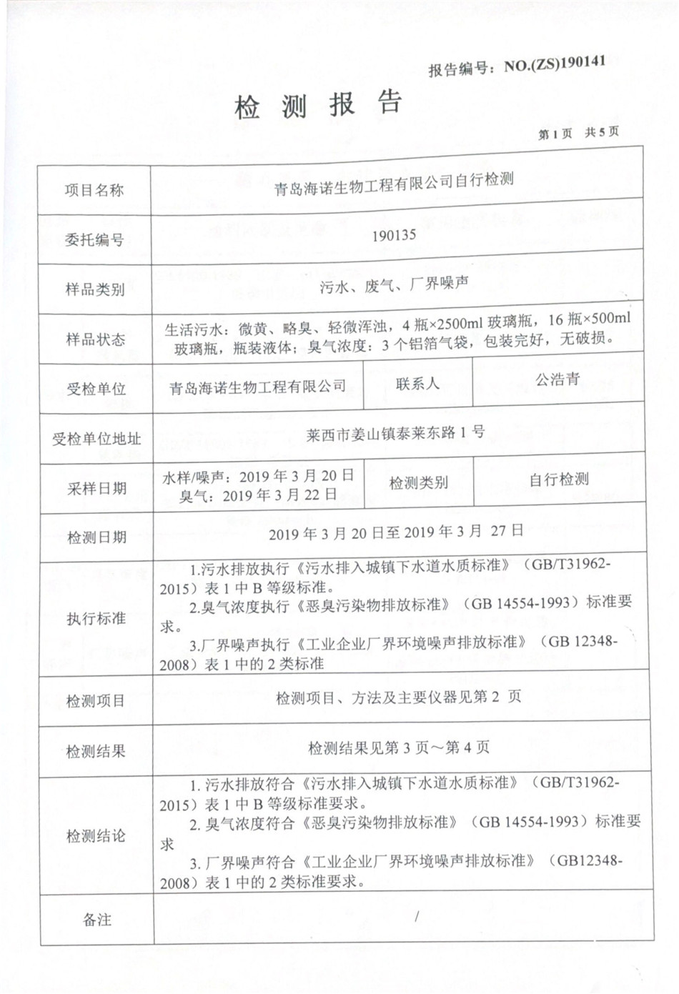 青島海諾生物工程有限公司自行檢測(cè)報(bào)告